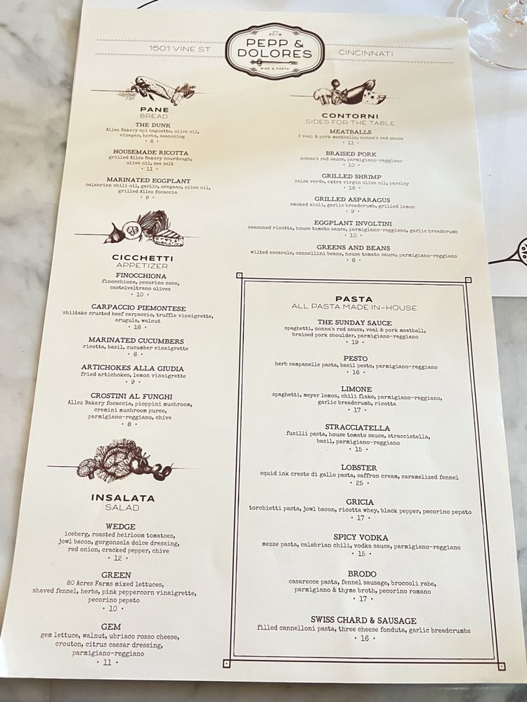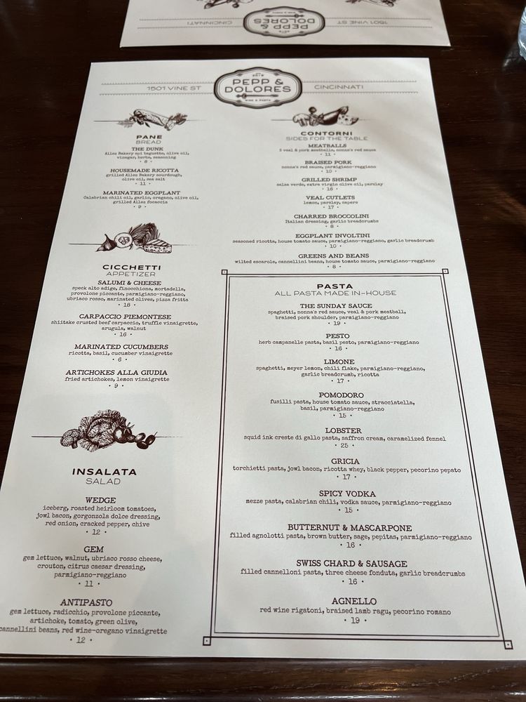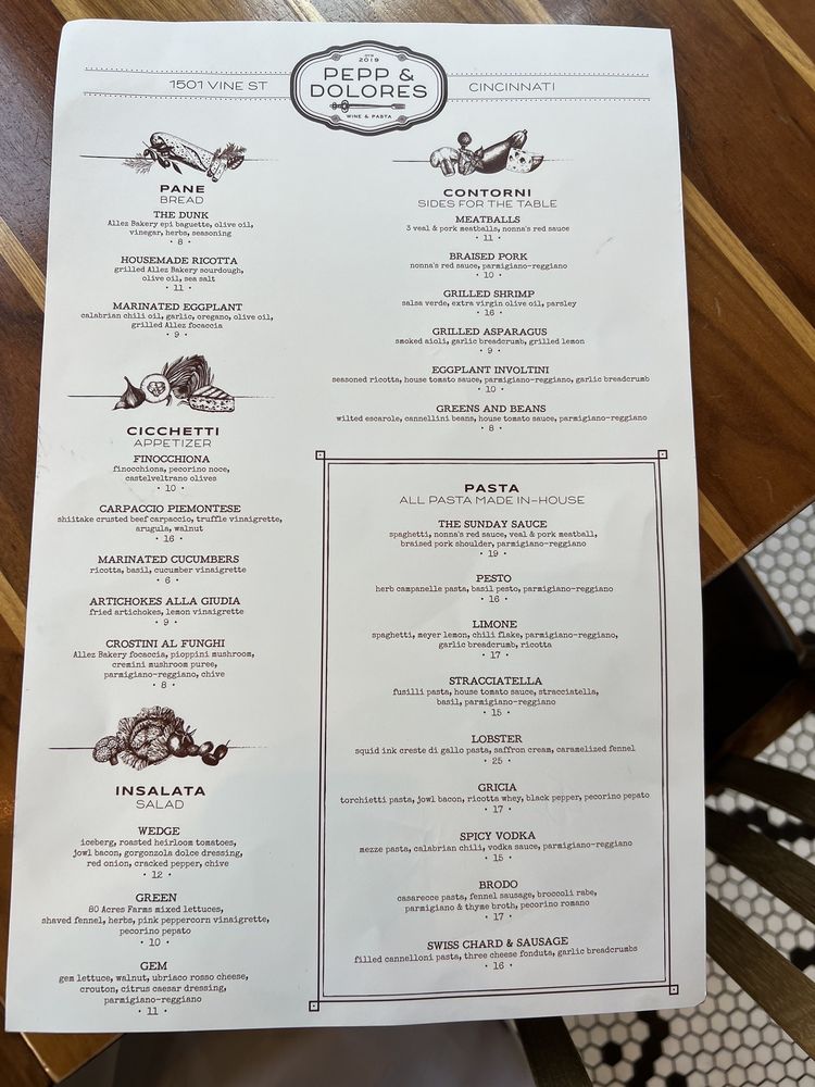 Pepp & Dolores is a trendy Italian restaurant located in Ohio, offering a casual yet upscale dining experience. With a full bar and gender-neutral restrooms, it caters to various preferences. The menu boasts vegan and vegetarian options, ensuring a diverse selection for all patrons. Customers praise the beautiful dishes and excellent service, with standout items like house-made ricotta, antipasto salad, and flavorful pasta dishes. The ambiance is described as intimate and cozy, making it a great spot for a dinner or business meeting. Despite some service hiccups, the overall dining experience at Pepp & Dolores leaves customers impressed. Be sure to try their signature dishes like lobster squid ink pasta and handmade pasta creations for a memorable dining experience.